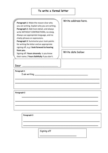 Preparing resources and planning creative lessons is something i enjoy doing and always endeavour to deliver for my classes. Watch this video to learn about the key features of a formal letter. Write three paragraphs following the structure of your headings in activity 2. Being able to recognise features of letter writing and persuasive writing examples will show children the important skills they need to succeed in writing. Formal english letters are quickly being replaced by email.however, the formal letter structure you learn can still be applied to business emails and other formal emails.follow these structure tips to write effective formal business letters and emails.